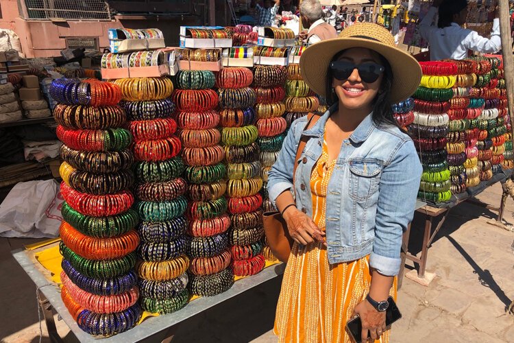 Prior to the pandemic, she traveled to busy marketplaces and bazaars across India to find handcrafted jewelry for her collection. She also makes some of her own jewelry.