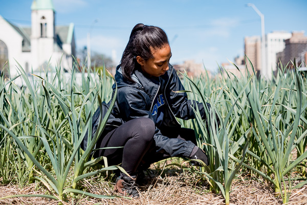 A 17-year-old high school senior, she spent the past summer working as a youth apprentice with Keep Growing Detroit (KGD) where she helped out at community gardens, built raised beds and water catchment structures, sold produce at Eastern Market, and wholesaled produce to local businesses. She also attended the 2016 Good Food Summit and other events, experiences she says increased her confidence.