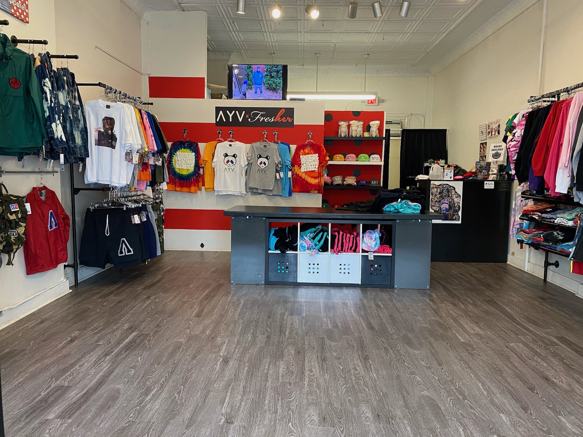 Husband and wife team, Anthony Temple and Melody “Fresher” Temple have been creating and selling their merger of two unique lifestyle brands for men and women in their store since AYV launched nearly two decades ago. The original sportswear brand has been spotted in feature films and television shows for years, and when Temple married his designer wife, the Fresher Brand brought an imaginative and exciting womenswear line to the store. AYV X FRESHER is a fun place to shop to support a cool local brand and a family business.