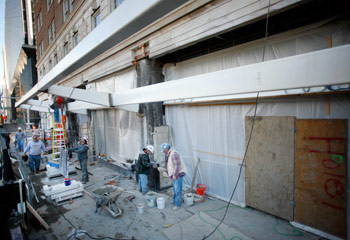 Steel beams will support the new awning, at the front of the hotel