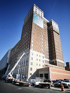 The Fort Shelby Tower Apartments are nearing completion, with occupancy scheduled to begin in mid-December. The 56 units span the 11th through 22nd floors of the taller, Albert Kahn-designed portion of the building.