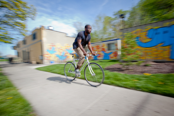 For Tunde — also a writer, who wrote this profile on urban ag catalyst Kirk Mayes in this week’s Model D — feeling a little uncomfortable on his bike is an important step in “feeling like (he) belongs on the streets.” He described a trip from his house in Woodbridge to Southwest that found him riding through vacant, post-industrial landscapes and alongside tractor trailers. “In retrospect, it’s OK that I felt uncomfortable. It’s good. The more you acquaint yourself with the city by finding little nooks and crannies and particular environments, the more comfortable you begin to feel. Ownership only extends to places you’re familiar with, and you deserve to be there.”