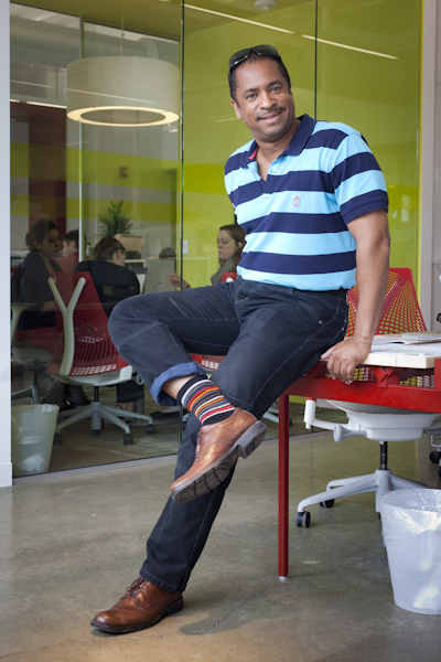 Sometimes that’s a suit pant leg, though usually not. Benson’s business-casual attire brought us to an important point in our conversation, since would-be workday cyclists can be easily turned off by the threat of sweat soaked clothes. How does he adapt come summer, when the issue’s most pressing?