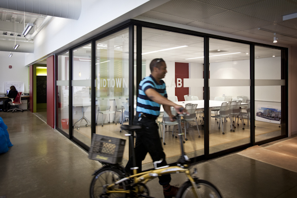 These days, Scott works for Midtown Detroit, Inc. as a Small Business Development Manager. (He’s also running for 1st District State Rep.) For his work, Scott finds cycling invaluable, but like everyone we talked with for this story, he’s a bicycling enthusiast, not an all-or-nothing fanatic. He usually drives to work from his home near 8 Mile and Gratiot to Midtown’s CoLab on Woodward and Alexandrine, where he keeps his work bike. Once there, it’s all bike (most of the time). Scott’s three to four meetings a week find him tracing an approximately three mile circumference through Midtown and Downtown, and for him, workday cycling is “all about ease of access and convenience.”