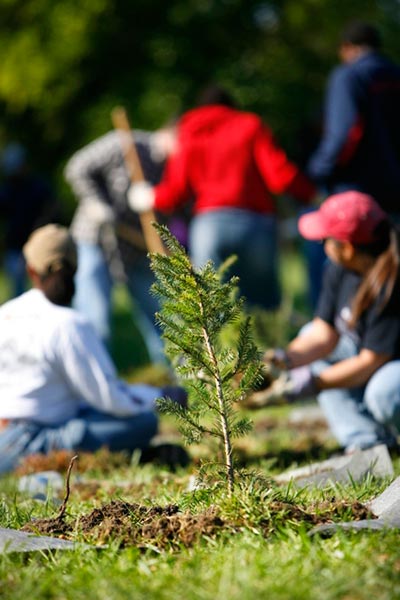The arrival of spring heralds the digging of dirt, if The Greening of Detroit‘s ambitious 2010 schedule has anything to say about it. From April 10 to June 5, about 1,750 trees will be planted citywide in 14 separate plantings. Greening, in partnership with the City of Detroit’s General Service Department, will plant 680 trees that will reforest neighborhoods affected by the Emerald ash borer infestation; And about a thousand trees will be planted with over 16 community groups and block clubs.