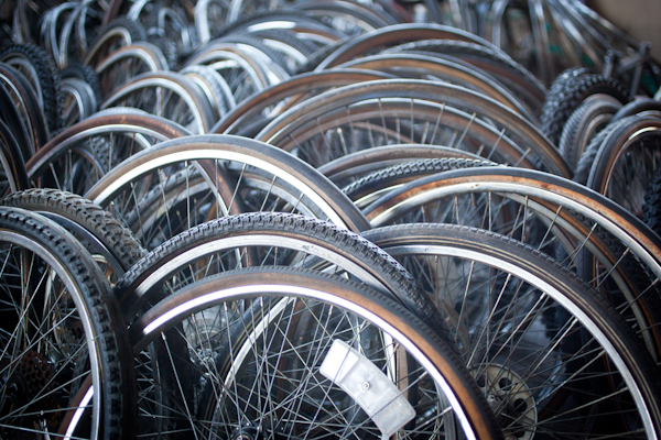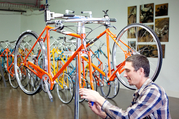 The steel bikes that Blazing Saddle Cycles fixes and sells are like the vinyl records of bicycles: cooler, sturdier, better. Peebles and Rychak buy the bikes at yard sales or off of Craigslist. The older bikes are more durable than the carbon or aluminum bikes rolling off assembly lines in China, they say.