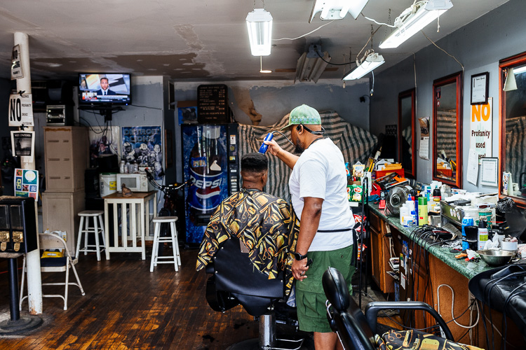 He enjoys standing behind the barber chair and sharing information with customers, recommending contractors for this project or that. Hardin Jr. also believes that more attention on West Village means that it will help him spread his message to the community.