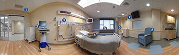 Each ICU room boasts the ability for medical professionals to quickly access electronic medical records; a sleeper couch and recliner chair for families to sleep over; patient-comfort technology, including wireless access, flat-screen TV and remote-control window treatments; and attention to privacy and quiet.