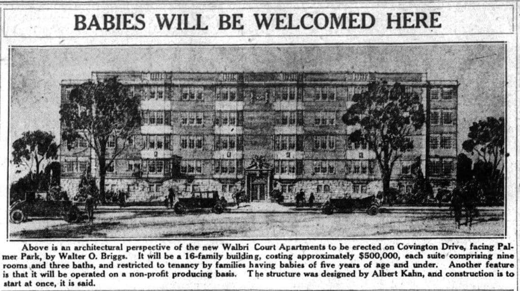 Formal development began in 1925 with the Walbri Court Apartments by Albert Kahn. Over the following decades, leading architects such as Robert West, William Kapp, and Weidmaier and Gay transformed Palmer Park into one of Detroit’s most architecturally diverse residential districts.
