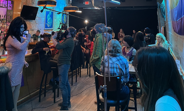 Alicia Schenider says it was important to the crew to ensure filming locations were affirming and safe spaces for the actors and extras — many who are part of the LGBTQ+ community themselves. The film opens with a scene with Monique Madison, a Kalamazoo resident and a drag queen at Five15 in Royal Oak. Madison plays a bar hostess where character Jane attends a speed-dating event for lesbians.