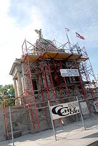 park-facing stairway and repair of the eagle sculpture perched atop the