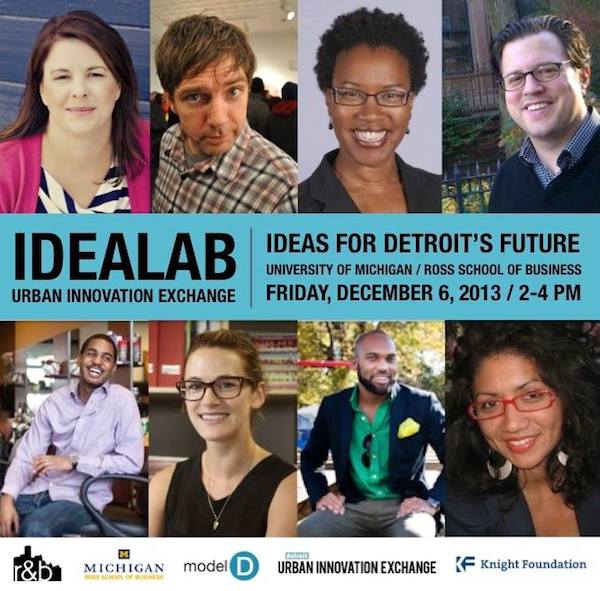 We're excited to partner again with the Revitalization and Business Conference this Friday, Dec. 6. Presented by the University of Michigan's Ross School of Business, "IdeaLab" is a fast-paced, two-hour session with a stellar line-up of Detroit innovators.