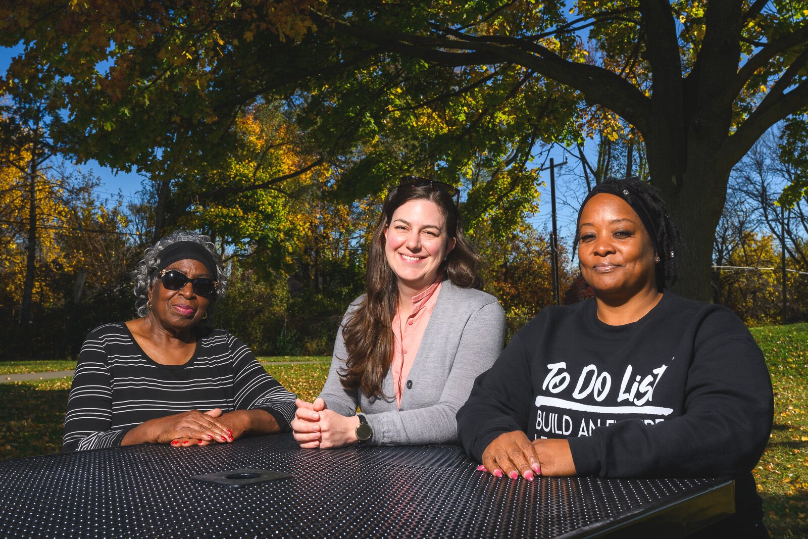 Juliana Fulton, Mary Marsh, and Kenyetta Campbell at Greenview-Wadsworth Park in Detroit.
