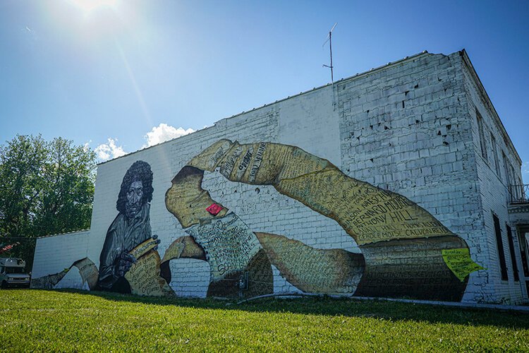 Her mural, located on the side of the Hamilton Tucker Art Gallery where she is a co-owner, was created by James with the assistance of her mentees, the “league of Misfit Art Loves,” including Ijania Cortez, Cyrah Dardas, Bakpak Durden. “I have access to this wall,” she says, “It’s large and it’s mine.”