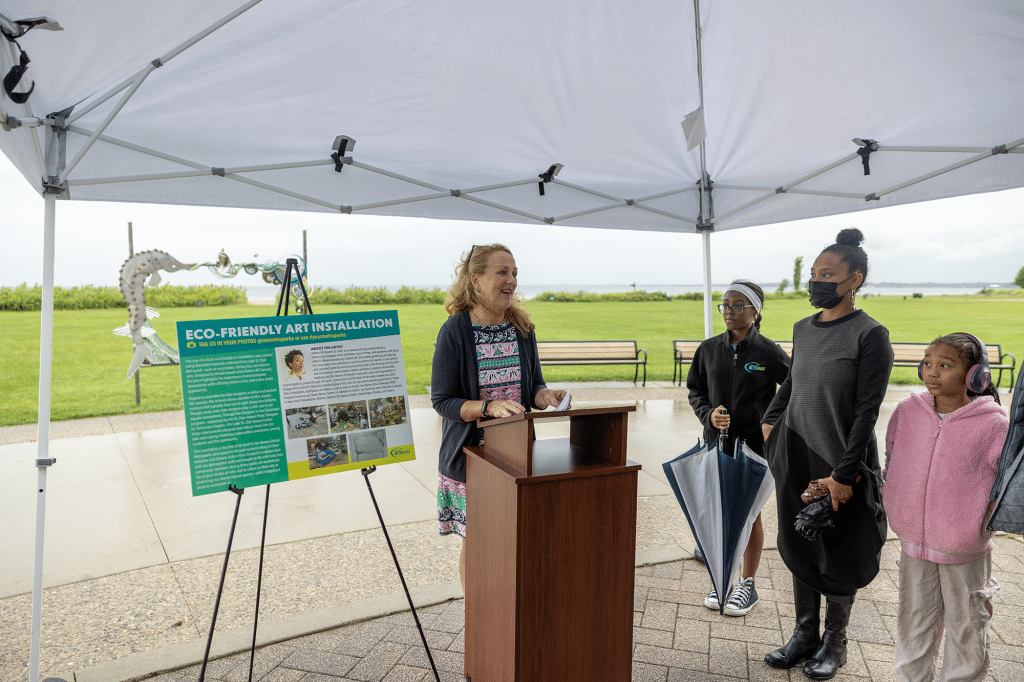 A new art installation at Lake St. Clair Metropark is designed not only to provide a fun photo opportunity for park visitors, but also to promote recycling and highlight the importance of lake sturgeon.