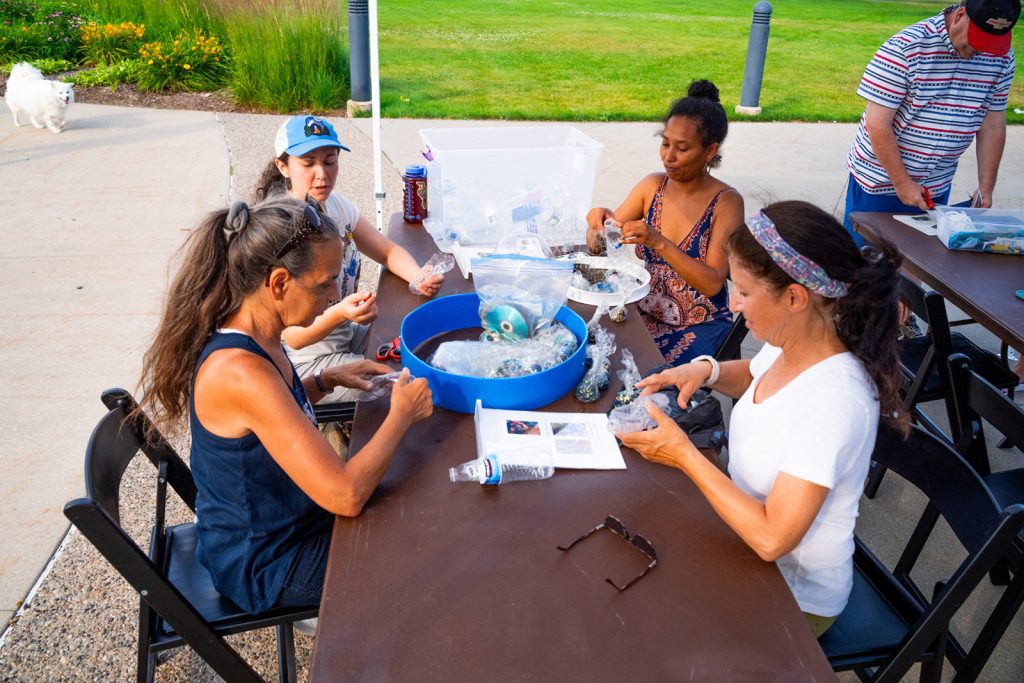Metroparks staff also proposed making the piece out of reused materials to support recycling goals in the parks system’s Climate Action Plan and similar messaging in the parks’ Keep it Clean campaign. Cassells collected plastic waste from the park to use in the piece, and also incorporated found metal and glass from elsewhere in the Detroit area.