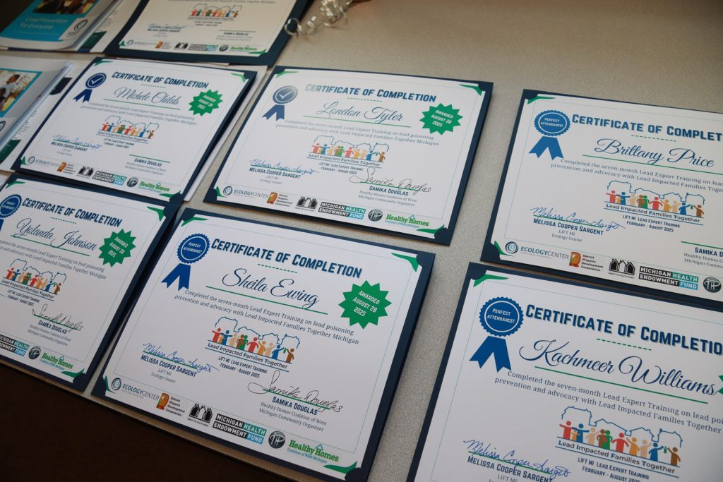 Participants also learned how to talk to their neighbors, the media, and lawmakers about lead, and they were asked to create lead action projects. Sargent says participants’ projects have included sharing what they’ve learned with others in person and on social media, as well as creating an educational game about lead safety. Ecology Center staff are also encouraging all LIFT MI graduates to participate in Lead Education Day next year in Lansing, where they’ll have the opportunity to share their stories and what they’ve learned with state lawmakers.