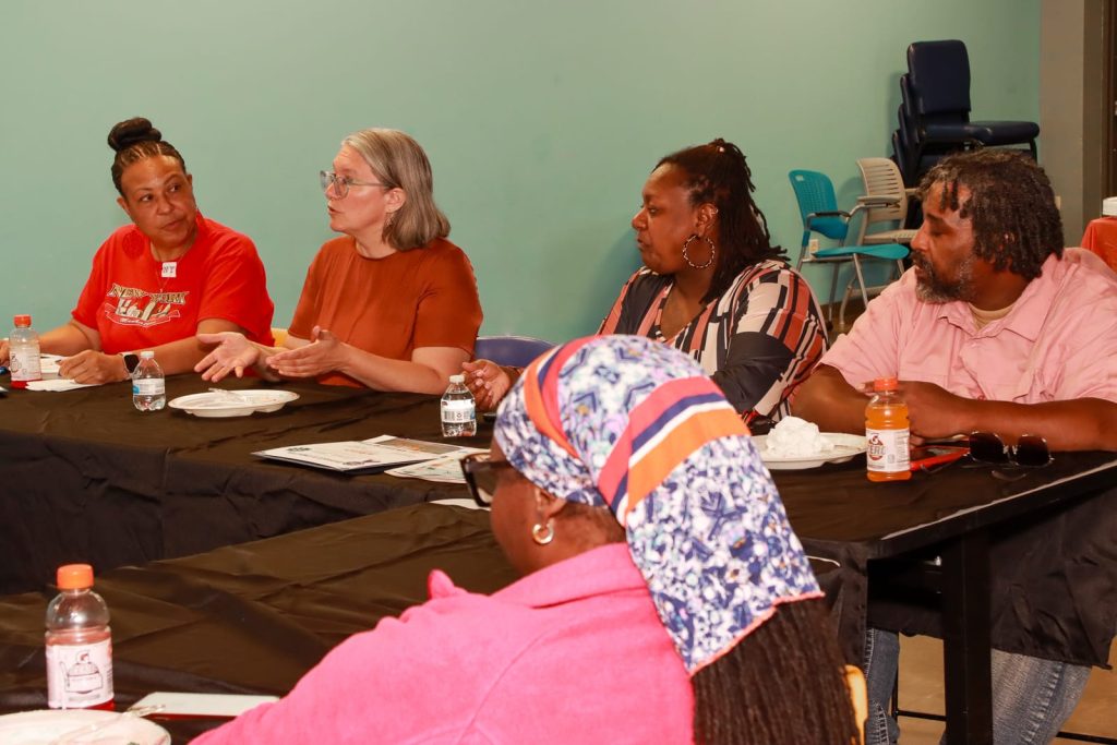 Melissa Sargent (second from left) meets with LIFT MI program participants. Tommy Allen