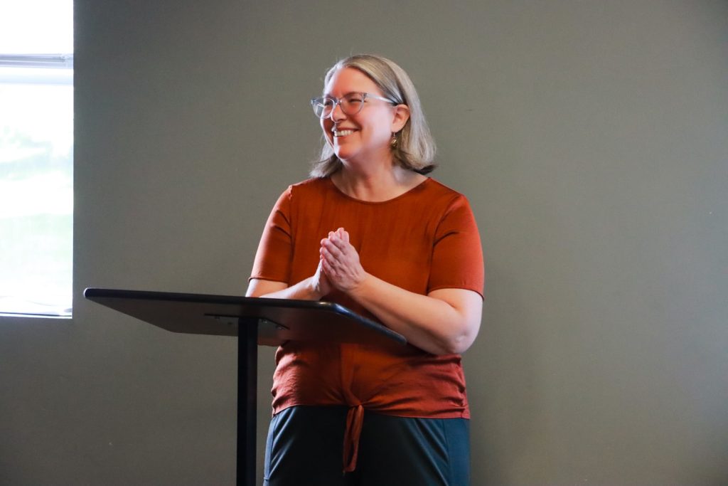 Melissa Sargent speaks at a graduation ceremony for LIFT MI participants. Tommy Allen