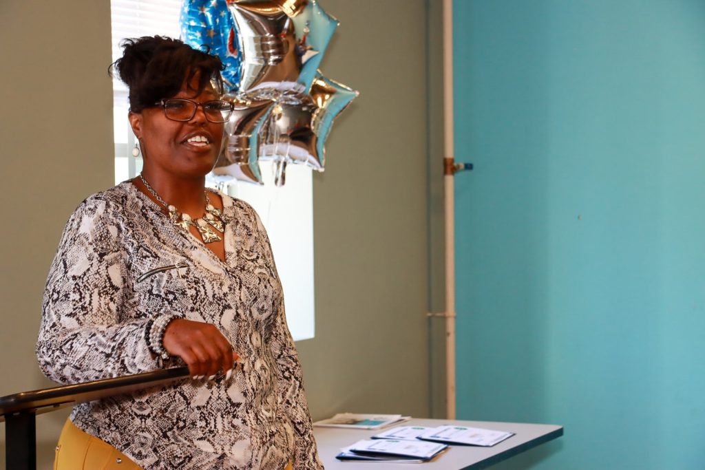 Samika Douglas, community organizer at HHCWM, speaks at a graduation ceremony for LIFT MI participants. Tommy Allen