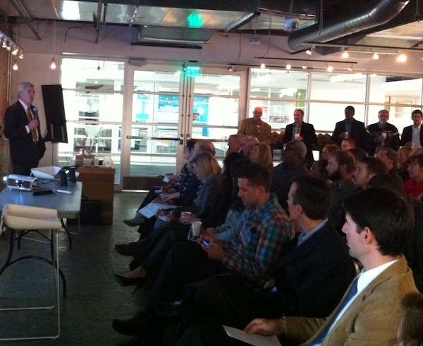 He did it by weaving together topics near and dear to a group made up of business and thought leaders, designers and architects — creatives of all stripes willing to gather at 8 a.m. for a talk about how good urbanism stimulates economic development.