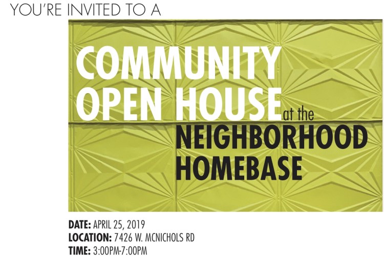 HomeBase’s inaugural celebration, which will be taking place on April 25, will be open to the public from 3 to 7 p.m. The community center is located at 7426 W. McNichols Rd. Light refreshments will be served. If your’e interested in attending, please RSVP here.