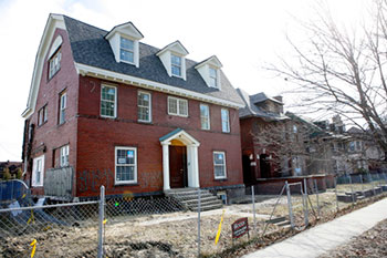 Two mansions on Mack, east of John R, are being restored as part of a development dubbed The Mack @ Brush Park. One of the two mansions is currently under construction, work on the other will begin later this year, and nine units of townhouses will be built on the vacant lot just east of the two structures.