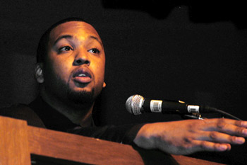 Carl Farrington Jr., speaks to local neighborhood students at The Marygrove Urban Agenda -Photo by: Tresa Meyer, staff graphic designer, Marygrove College