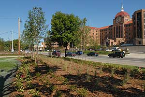 Does the boundary between Detroit and Grosse Pointe Farms feel a bit friendlier these days? It should, since St. John Hospital has invested nearly $500,000 into a complete makeover of the Moross median between Mack and Linville. Construction, which got underway in June, will wrap up this week.