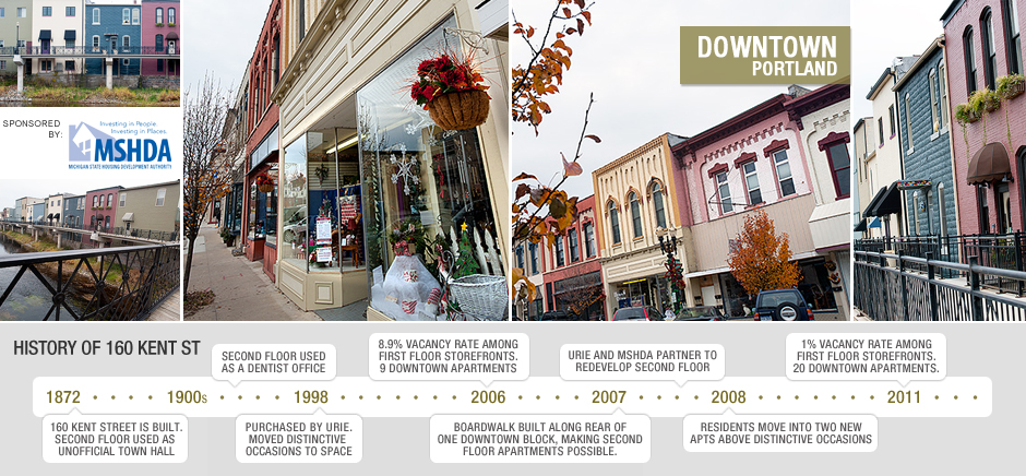 Imagine that impact times ten. Urie wasn’t alone in taking advantage of MSHDA’s rental rehab program. Eleven new rental units were developed in Downtown Portland in the span of two years, bringing the total number of apartments in the district to 20.