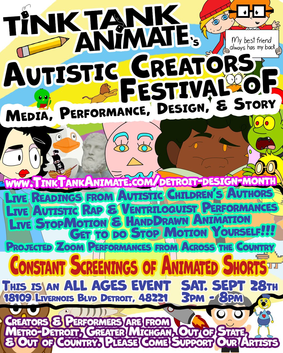 All ages are welcome. The event takes place on Saturday, September 28 from 3 p.m.-8 p.m. at 18109 Livernois Ave. in Detroit. To register for the festival for free, visit https://www.detroitmonthofdesign.org/event-details/autistic-creators-festival-of-media-performance-design-and-story/form.