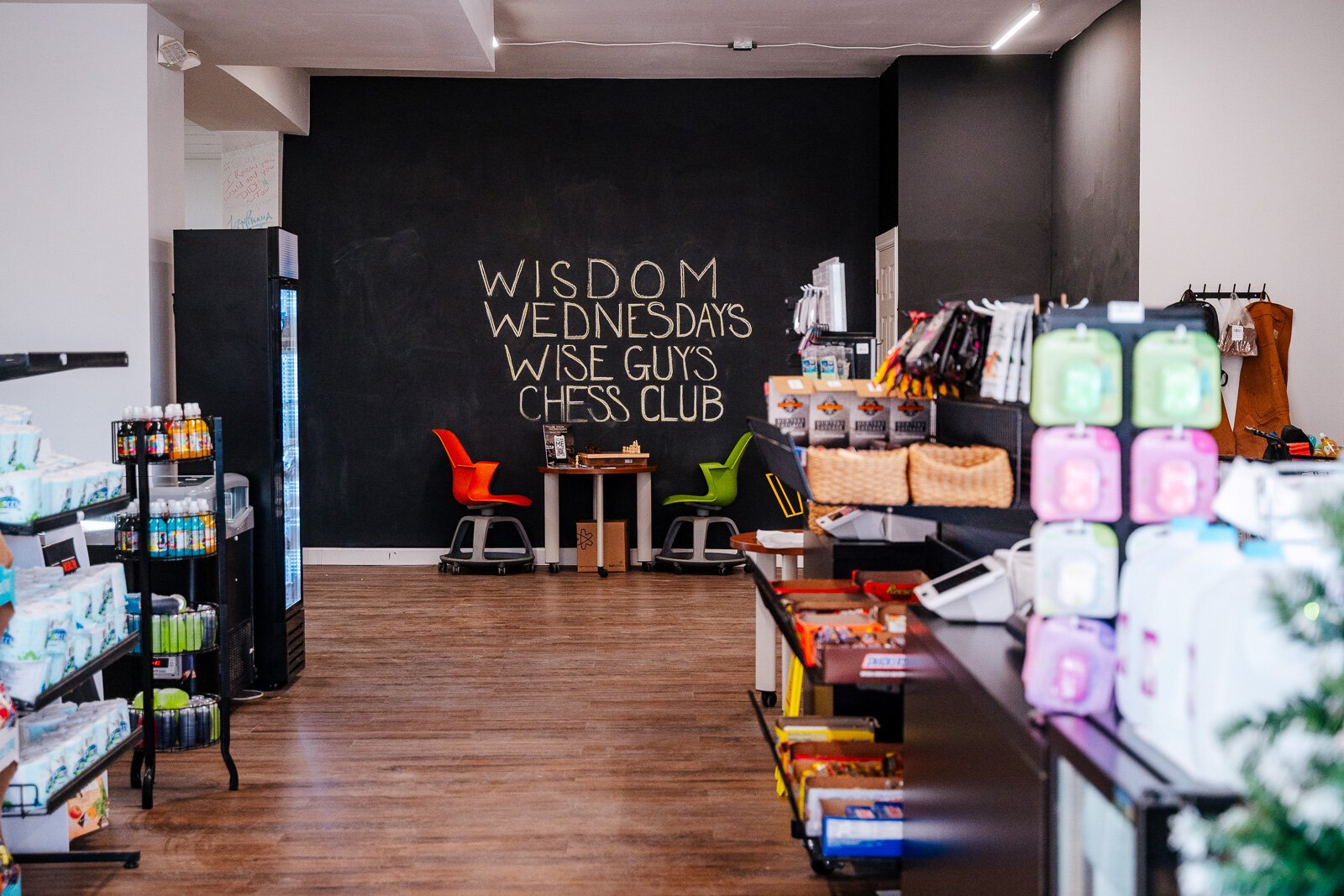 Wright and his nephews hope their familiarity with one another will engage consumers throughout the store. Situated in a residential neighborhood, walking distance from hundreds of homes, Neighborhood Grocery aims to be a place where people can access food staples, local products, and fresh produce and connect with neighbors. A community that plays together stays together, an idea Wright promotes through Wisdom Wednesdays, “Grocery Store Edition,” where customers stop in and play chess.