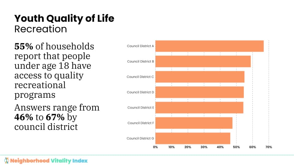 D3 and JFM continue to refine the NVI survey, each annual effort generating new feedback used to improve the survey. For instance, they noted that residents answer very differently on the same topic depending on how a question is worded. Men and young people are currently underrepresented among those who complete it, too, according to Morgan. D3 and JFM are working hard to bring those numbers up through greater community outreach and a strong public relations campaign.