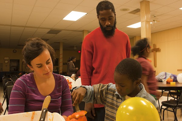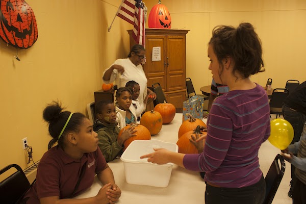 Kid’s Corner is a labor of love for Katharina Walsh, who, outside of a handful of parents who assist her regularly, runs the program by herself as an unpaid volunteer after spending the day at her job with Jewish Vocational Services, where she does work with special needs adults. St. Christine’s Soup Kitchen allows Kid’s Corner free access to its facilities, but Walsh and parents have to do cleanup, which, after events like pumpkin carving and spending two hours playing with the kids, can be intensive.