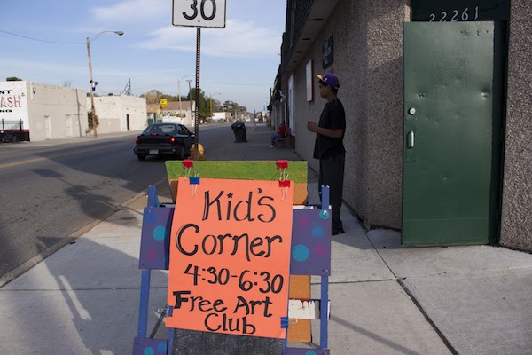 Every Monday and Wednesday at 4:30 p.m., a sign is planted on the corner of Fenkell and Dacosta in front of St. Christine’s Soup Kitchen. It reads, “Kid’s Corner Free Art Club,” inviting children and parents to come in and hang out.