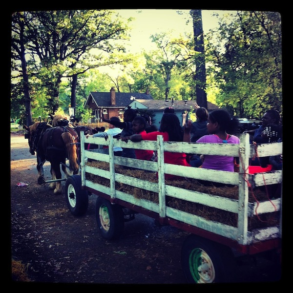 The scene was idyllic amid the rolling topography of Northwest Detroit and the verdure of the neighborhood. It was easy to forget you were within the limits of Michigan’s largest city and not in a pastoral hamlet up north. Children and their parents played games, shared food, and pressed fresh apple cider from locally grown apples. Younger kids hopped on a hay wagon pulled by two horses for rides around the block.