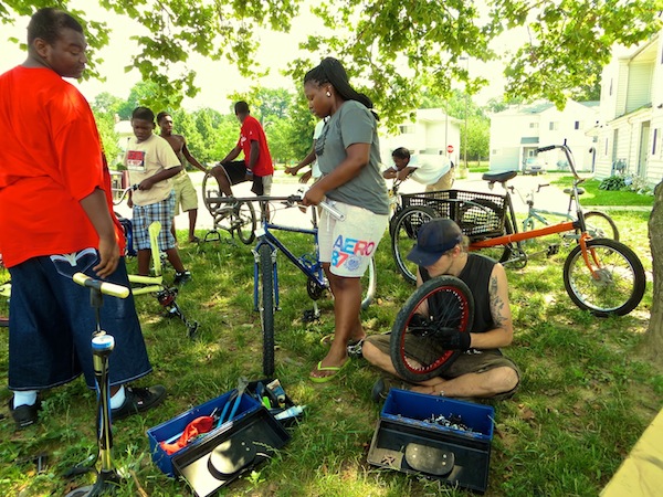 The Brightmoor Woodworkers, Brightmoor Bikes and Trailers, DCS Apparel and Detroit Community Market Gardens are part of Youth Entrepreneurship in Action, programs that are based out of Detroit Community High School and operate throughout the year.