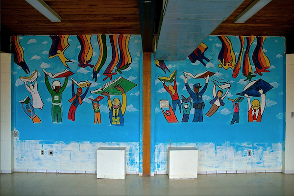 Community meetings are a frequent occurrence within the center’s walls. The board of the Brightmoor Alliance meets there regularly. A meeting regarding the future of the 98 contiguous acres recently cleared of non-structural blight in Brightmoor recently was held at the community center, which we reported on last month. Talbert’s personal vision for this area is to create a sculpture park there and invite artists from around the world to make pieces for it, and perhaps invite them to occupy some of the vacant homes.
