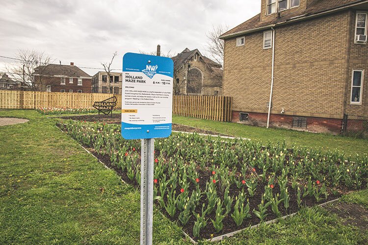 The 6134. HOLLAND MAZE LITERACY PARK focuses on children in pre-K through fifth grade. NW Goldberg Cares has planted more than 1,000 tulips donated by Bedrock in the park. The park was scheduled to host a summer reading program with notable Detroiters reading to children, but COVID-19 halted in-person programming. NW Goldberg Cares will host a virtual reading program instead with planned guests Rochelle Riley and Mary Sheffield.