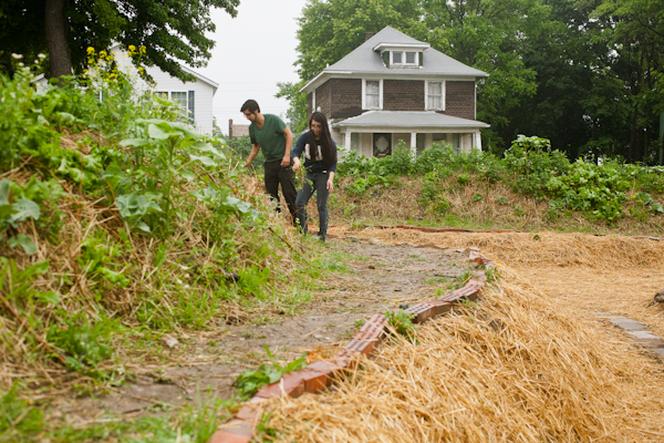 From the street, it appears as though a meteor struck a vacant lot at 116 Candler Street in Highland Park, leaving a three-foot hole, surrounded by a rough-hewn mulch mound of about the same height. To the uninitiated, innovative growers teaching a technique called permaculture may appear like aliens in this largely vacant neighborhood where the idea of gardening is more linear.