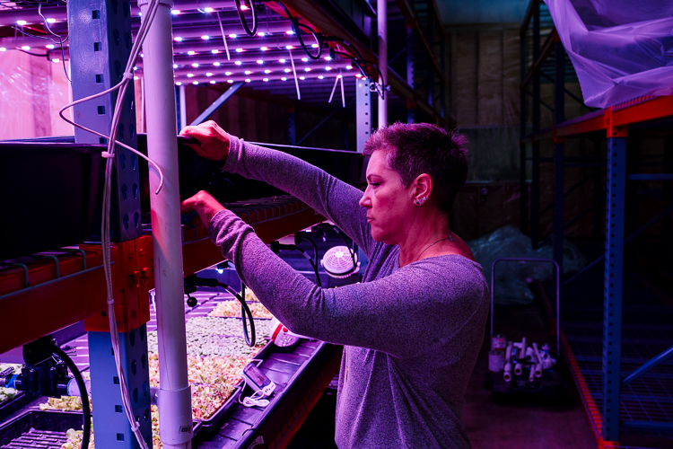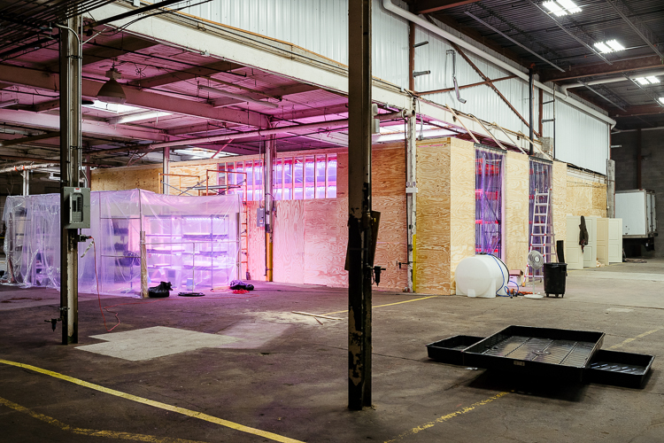 Planted’s initial 6,000-square-foot production space is filled with heavy duty shelving for holding lights and hydroponic growing trays. Five of these shelves rise up to a ceiling that is sealed-off from the rest of the space to control temperature and humidity. The goal is to fill the 20,000-square-foot building within three to five years and then move to a larger building that they will construct themselves.