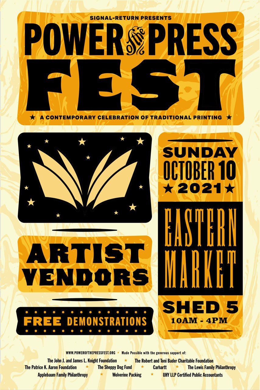 The Power of the Press Fest, hosted by Signal-Return, is scheduled for Sunday, Oct. 10, from 10 a.m. to 4 p.m. at Shed 5 in Eastern Market. The festival is free to attend.