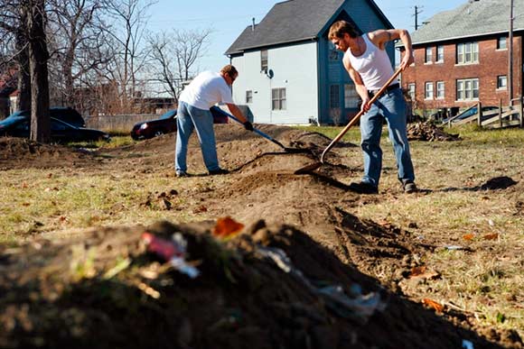 A pump track is a continuous, looped dirt mound used to improve BMX skills. Its smaller size, as compared to a full-scale BMX bike park, makes it “accessible to any age, any skill level,” says North Corktown resident Brian Conaghan. Members of the Corktown Residents Council (CRC), armed with Conaghan’s know-how gleaned from his years in Colorado constructing these tracks with friends, have built one in the North Corktown neighborhood at the northeast corner of Sycamore and Cochrane.