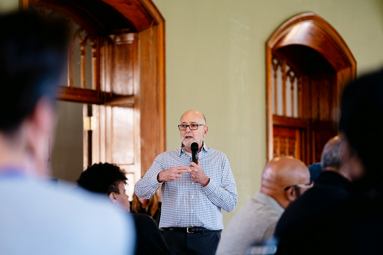 John Goldstein, founder of the activist network Coalitions, Campaigns and Community Benefits (COCACOM), kicked off the gathering that morning with a keynote speech looking at the struggles and successes of the community benefits movement from a national perspective.