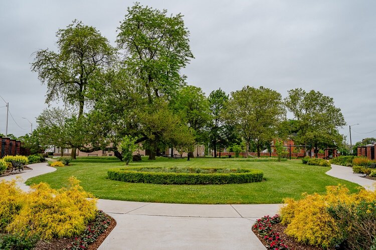 Scripps Park, located at the southern end of Woodbridge, at the intersection of Trumbull and Grand River, boasts a major redesign that’s less than four years old. A space that some in the community once considered walled-off, passive, and run-down, now houses a children’s playground, blooming perennial beds, a stone reading circle, rose garden and a massive climbing tree known to all who’ve been through the park’s historic brick and cast iron fencing. There are picnic tables, benches, charcoal grills, lamp posts and even a bicycle pump and tune-up station. A large reinforced green space welcomes festivals, community concerts and movie nights with views from a sloping hill.