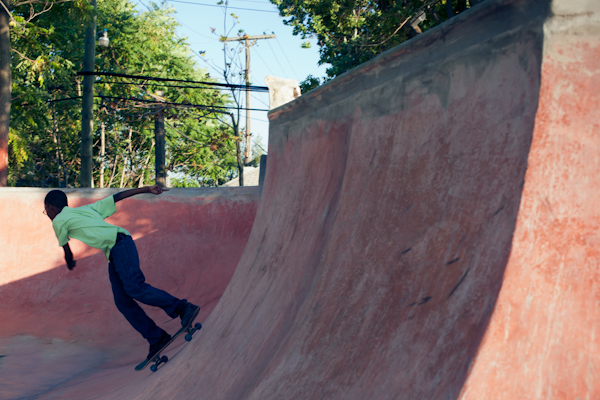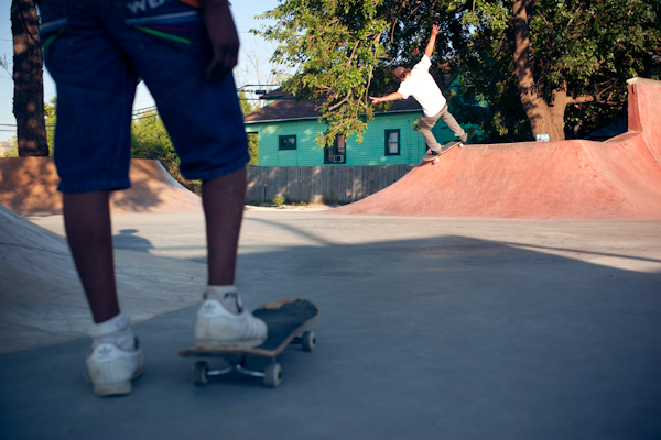 The kids from Bangalatown are proud of their park, and eager to see it continue to grow. They help clean it up and keep an eye on it, and one of the youngest made sure I knew he’d been skating there since the very first day it was skateable. The ones who ride or drive over from elsewhere are amazed it exists at all, saying there’s nothing else like it in the area. And everyone there just seems glad to have something to do. (A 19-year-old named Vonté tells me he comes three or four times a week, staying for eight or nine hours a stretch.)