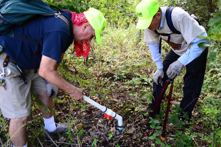 Volunteers treat invasive species at Warren State Park. Photo by Mark Wedel.