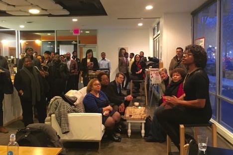 Carla Walker-Miller of Walker-Miller Energy filled the room at Cafe con Leche with sass and wisdom, sharing her frank advice for starting up and scaling in Detroit. She had to learn to meld her personal culture and business culture in order to succeed at building her own company.
