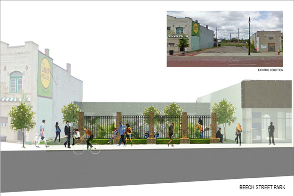• Detroit Institute of Bagels, the long-awaited bagel shop coming to Corktown (scheduled to open in July). Co-owner Ben Newman is putting his urban planning degree to good use — he designed a “pocket park” that will occupy what is now a gravel lot between his building and PJ’s Lager House, creating a green space on an otherwise vast expanse of concrete. We got a peek at the rendering, and it looks like it’ll be a fantastic addition to the neighborhood. For a full story on the shop’s progress, go here).