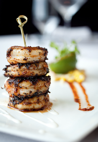 One bite of his cooking will make a believer out of you, too. We sampled two appetizers from the Restaurant Week menu, the blackened shrimp and the braised short ribs. What immediately stands out, once you’ve appreciated the beautiful presentation, is the value–both portions are almost generous enough to be considered entrée-size at other restaurants. The jumbo shrimp are stacked high and slathered with a spicy sauce; the corn and bean relish and crème fraîche are a sweet and soothing counterpoint to the heat. The ultra-tender braised short ribs have a sweet and sour flavor from barbecue spices and a little white balsamic, with wild mushrooms adding a touch of luxury. The meat rests on a bed of white polenta with asiago, the perfect medium to soak up the juices. If you want to try something not on the regular menu, we would steer you towards the corn ravioli as an entrée. The dish features fiddlehead ferns, only available for a very short time each year. Chef Yamauchi has also brought back the Hunan shrimp and Kobe burger, a favorite from past DRW menus, if you somehow haven’t gotten your fill of protein from the appetizer course.